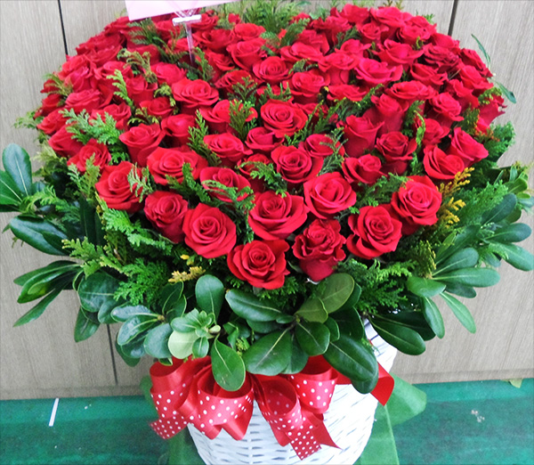 예쁜바구니에 장미 한아름 가득 안겨주면 이보다 더 좋을수는 없을것같습니다.