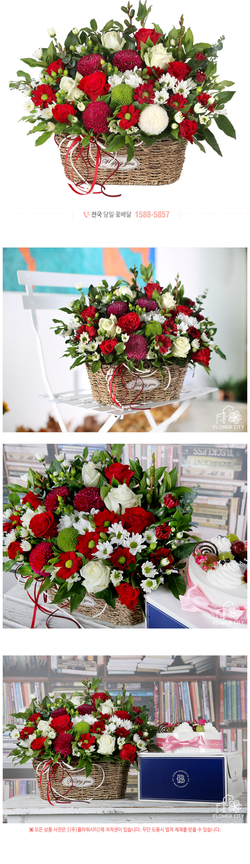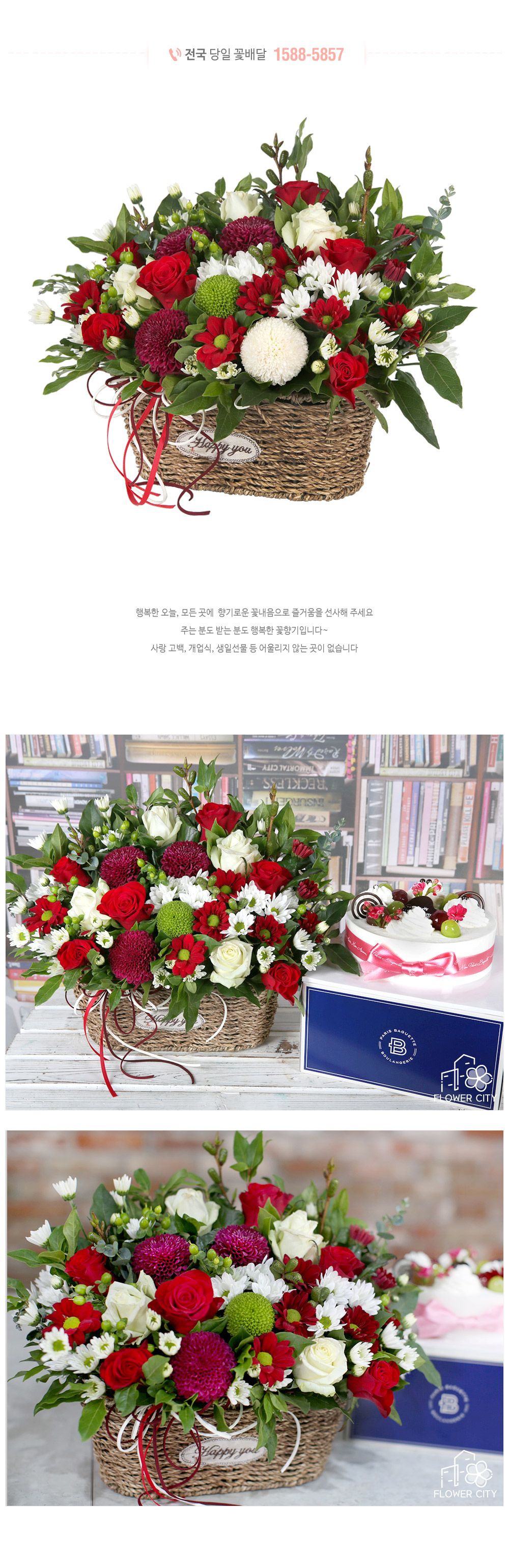 중요한분들께 기쁜날 꽃바구니 케익을께보냅니다 여러업체 고민하다.플라워시티 항상애용합니다 제품상태모두 너무좋아요.친절상담과 정확빠른배송 .항상감사합니다 올한해도 항상 감사했습니다. 새해복많이받으시고 내년도 애용할께요^^