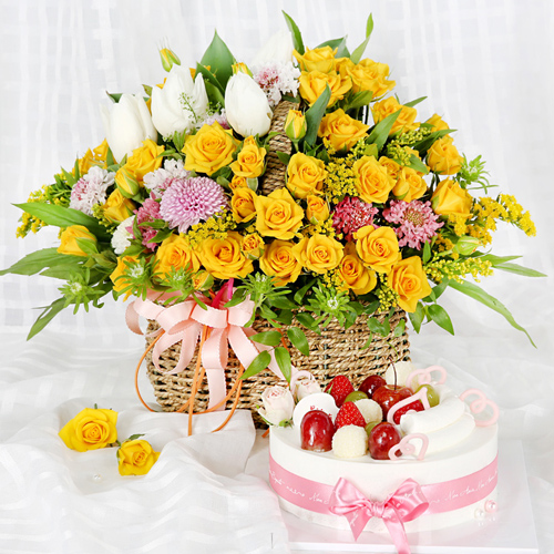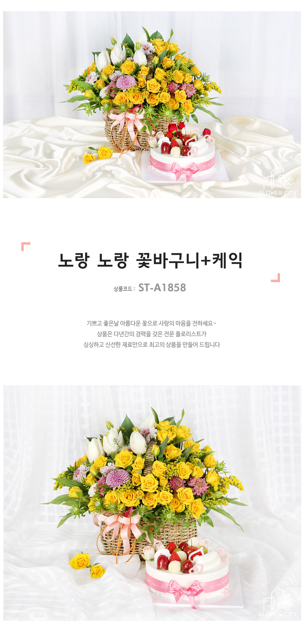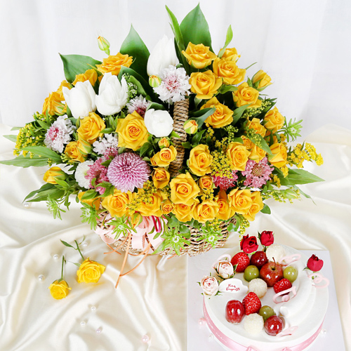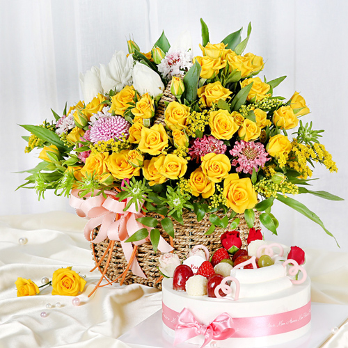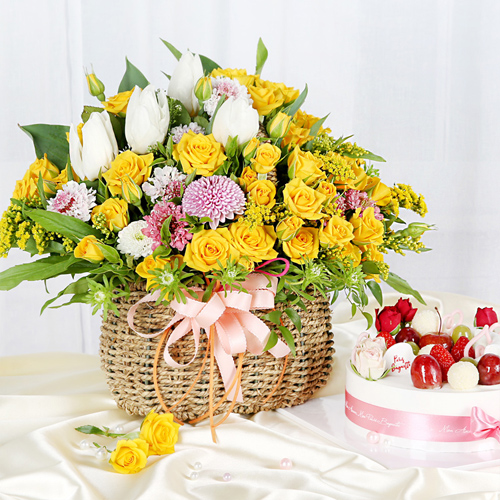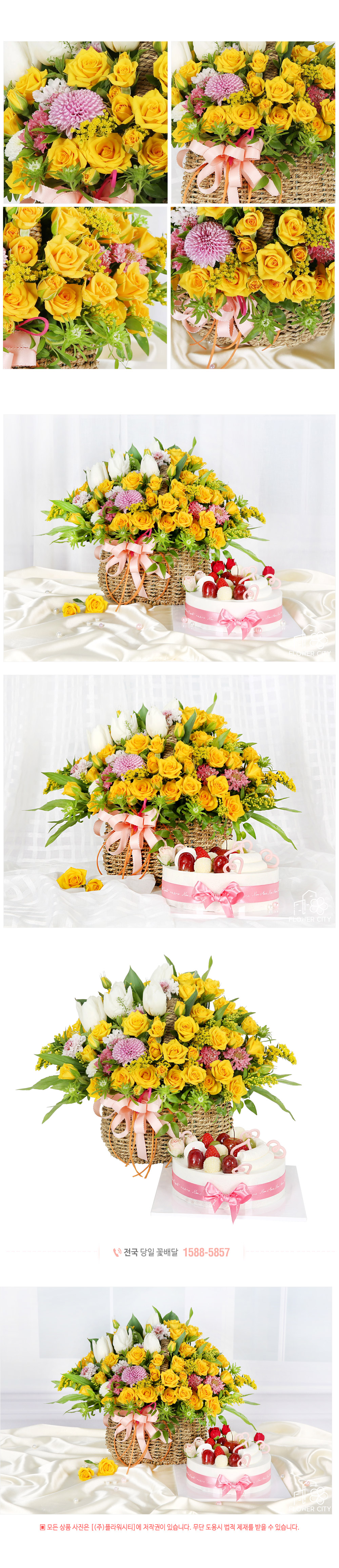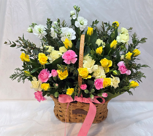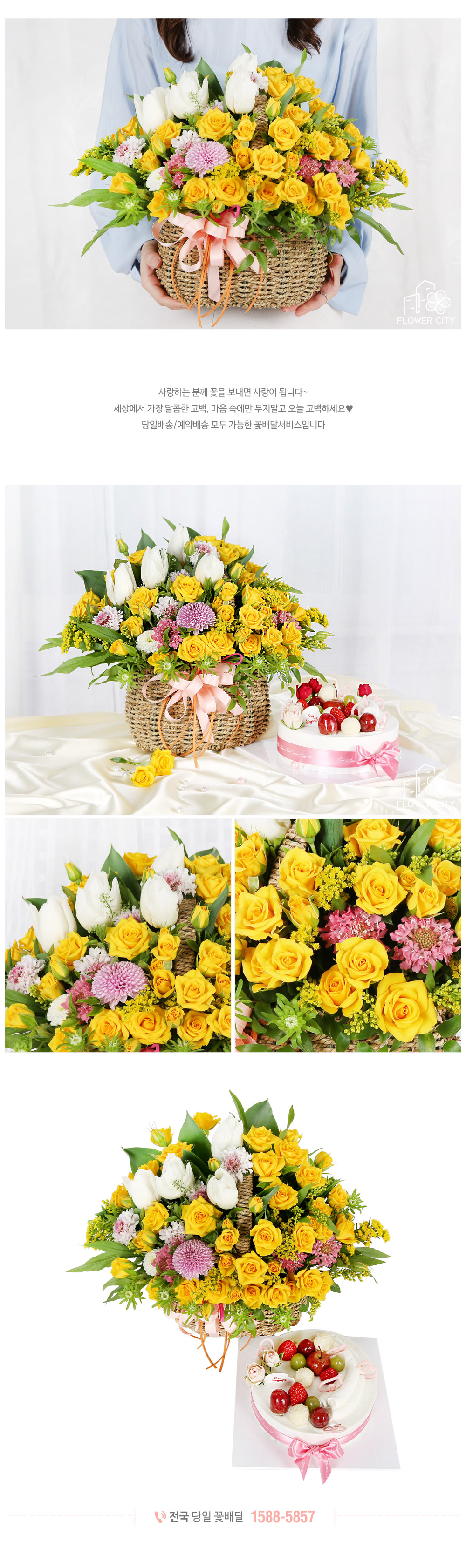 노란 장미가 가득한 바구니 구성이 정말 화사하고 예쁘게 도착했어요!