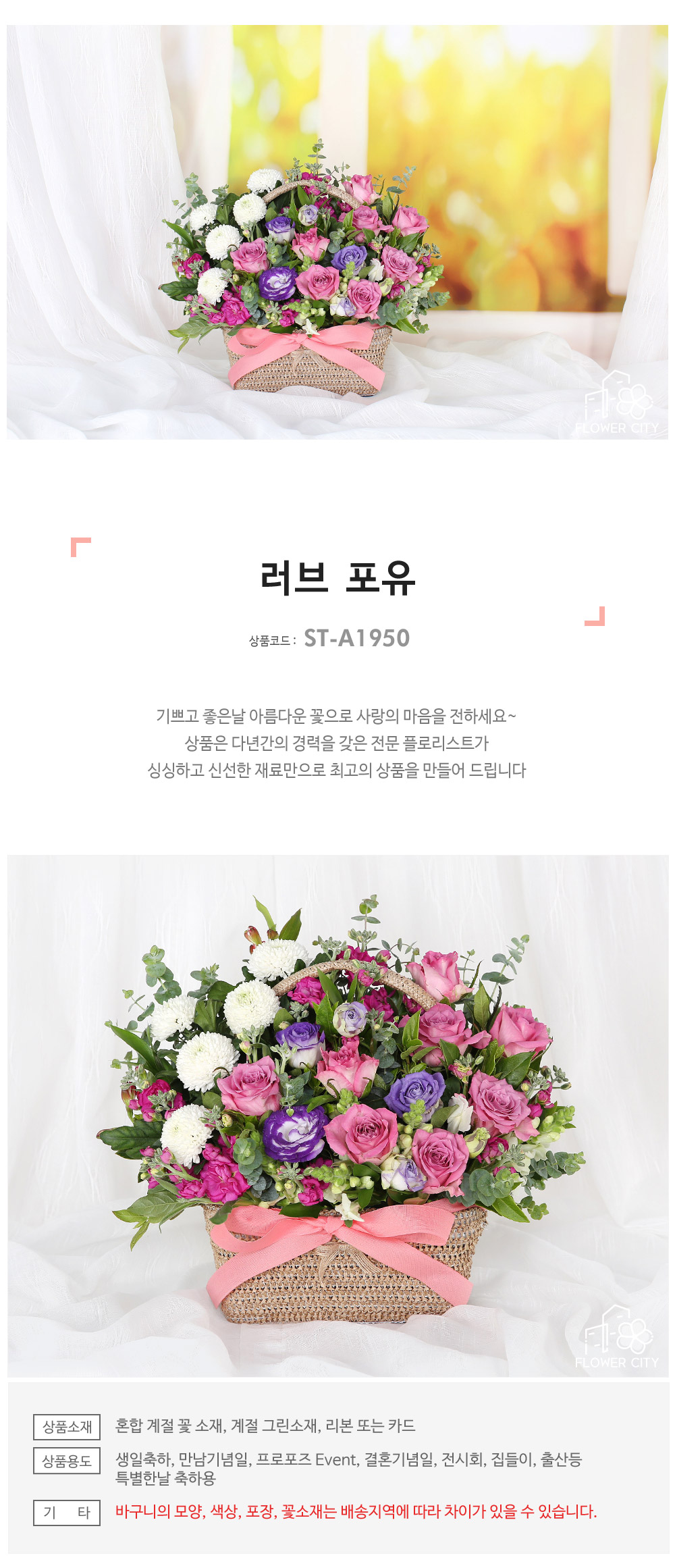 ★ 바구니의 모양과 색상, 꽃소재는 배송지역에 따라 차이가 있을 수 있습니다.