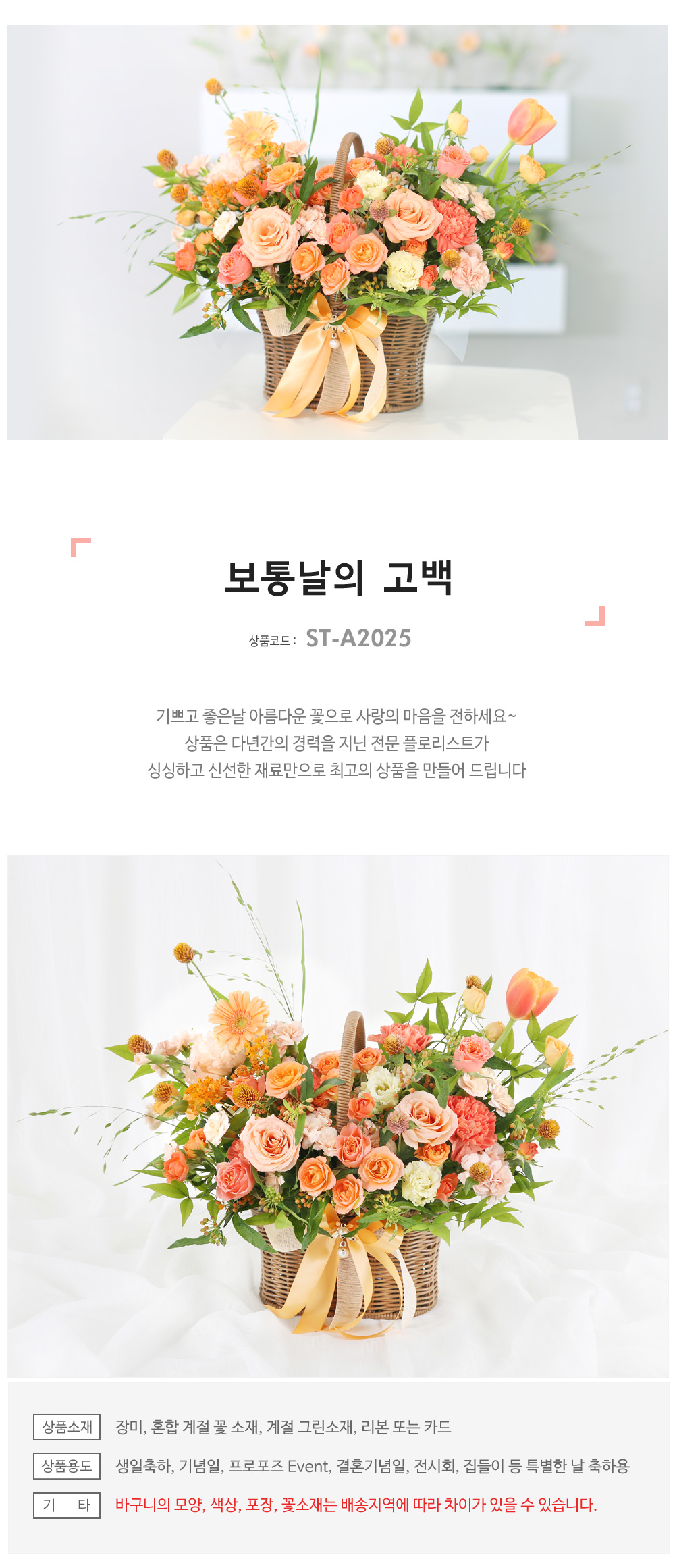 ★ 바구니의 모양과 색상, 꽃소재는 배송지역에 따라 차이가 있을 수 있습니다.