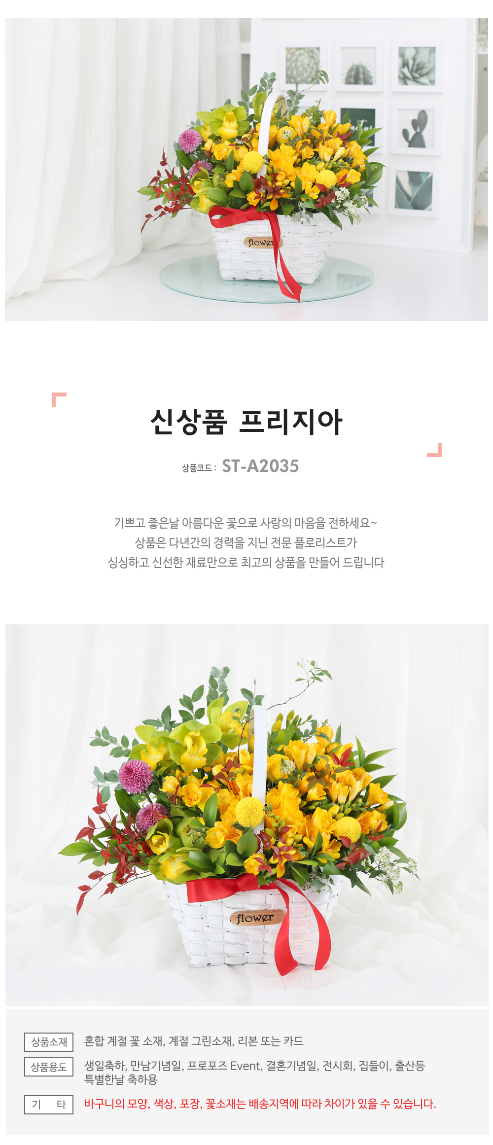 ★ 바구니의 모양과 색상, 꽃소재는 배송지역에 따라 차이가 있을 수 있습니다.