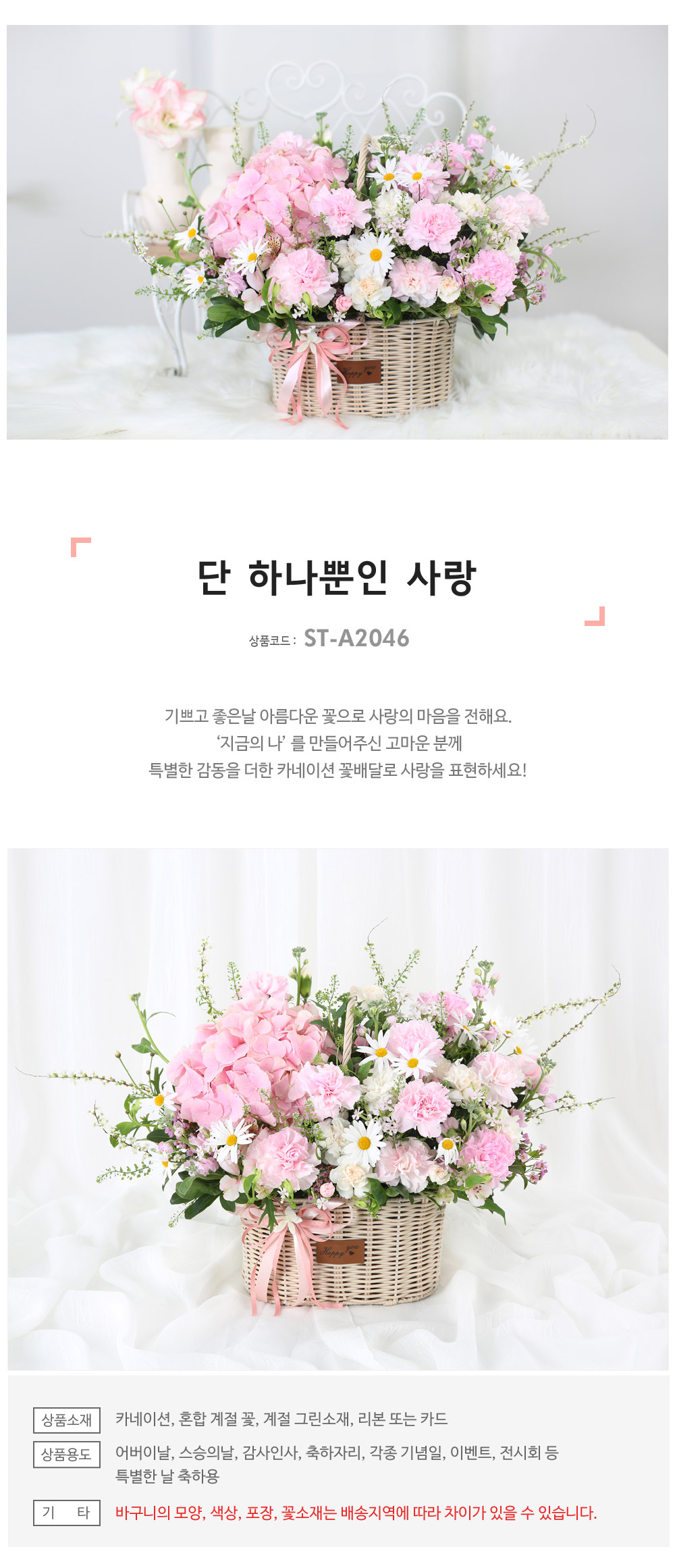 ★ 바구니의 모양과 색상, 꽃소재는 배송지역에 따라 차이가 있을 수 있습니다.