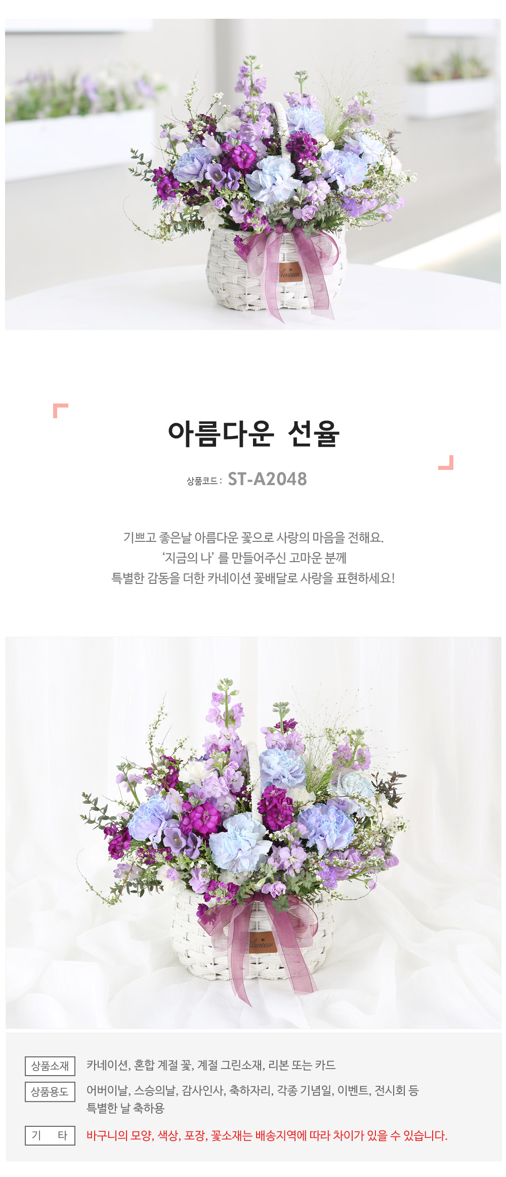 ★ 바구니의 모양과 색상, 꽃소재는 배송지역에 따라 차이가 있을 수 있습니다.
