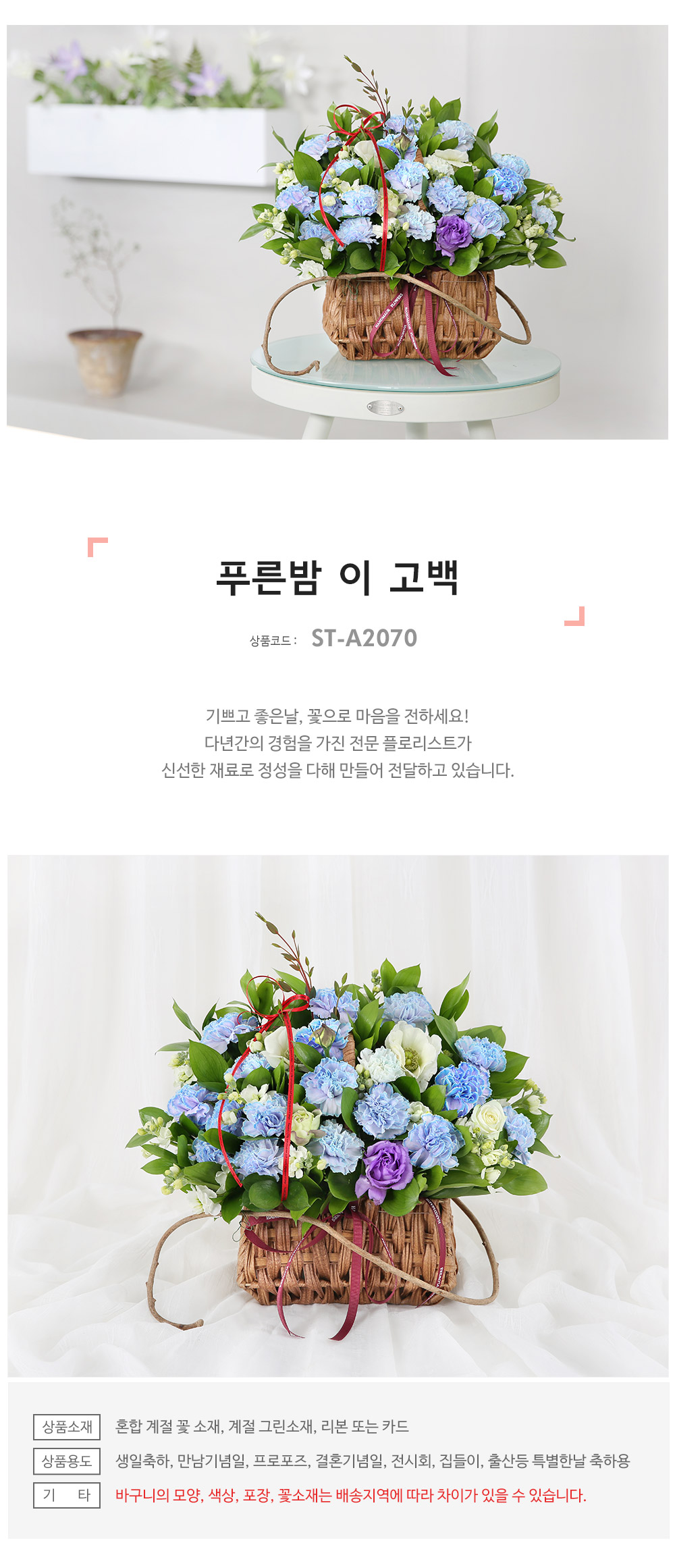 ★ 바구니의 모양과 색상, 꽃소재는 배송지역에 따라 차이가 있을 수 있습니다.