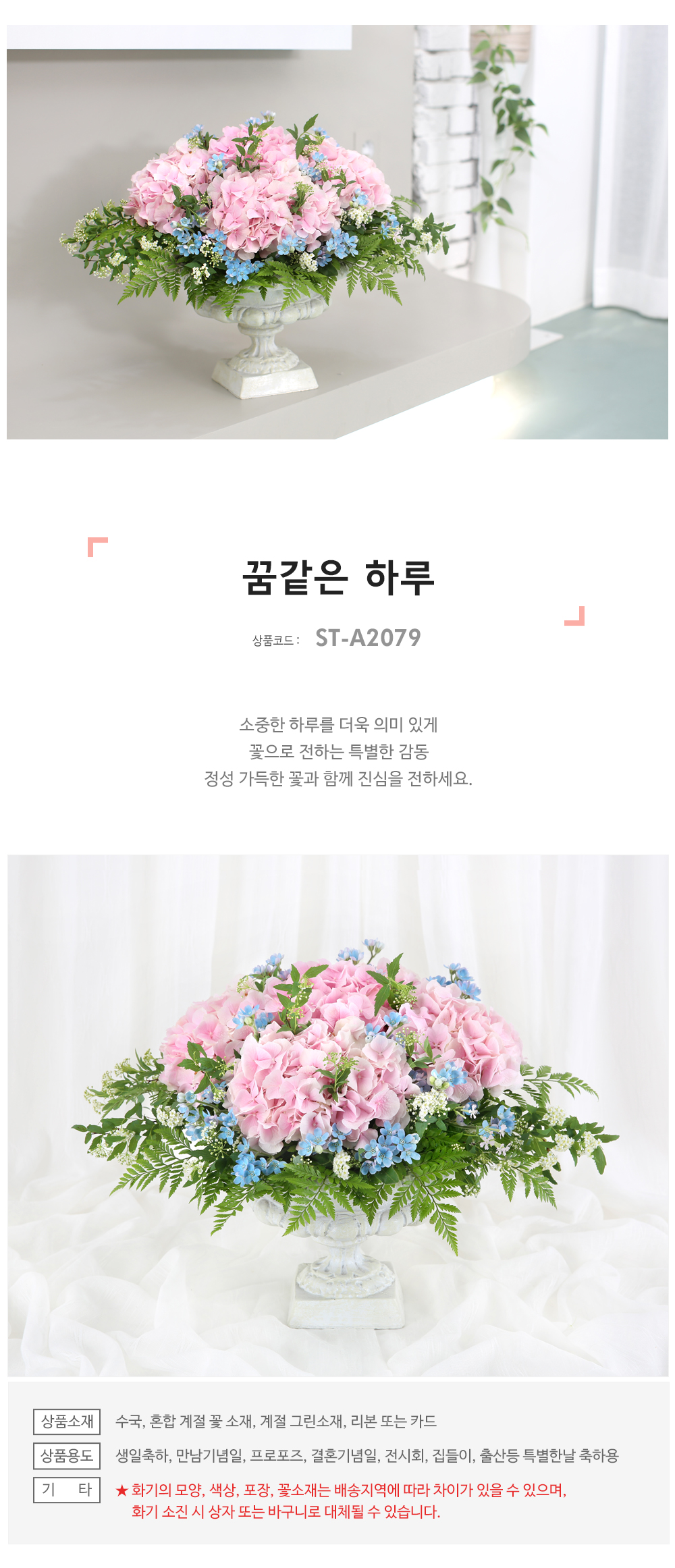 ★화기의 모양, 색상, 포장, 꽃소재는 배송지역에 따라 차이가 있을 수 있습니다.