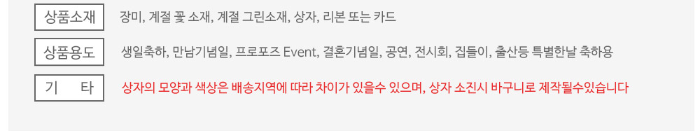 ★ 상자의 모양과 색상은 배송지역에 따라 차이가 있을수 있으며, 상자 소진시 바구니로 제작될수있습니다.