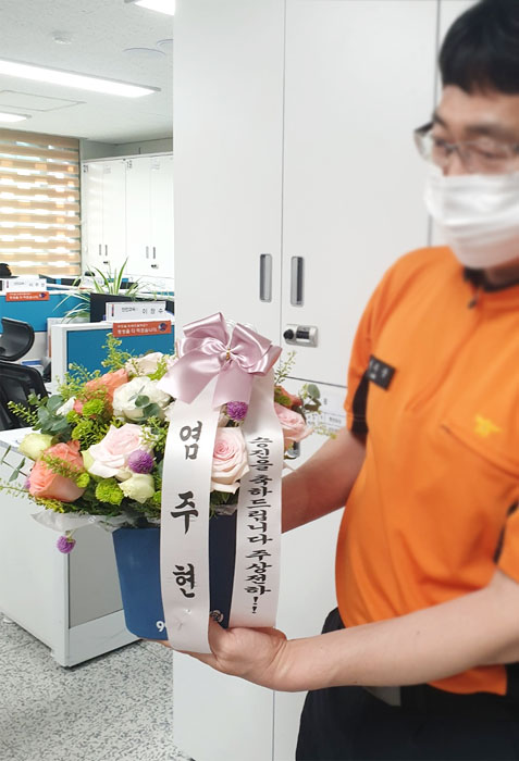 신랑이 승진했어요~ 이쁜 꽃상자 덕분에 제가 스타가 됐네요, 고맙습니다^^