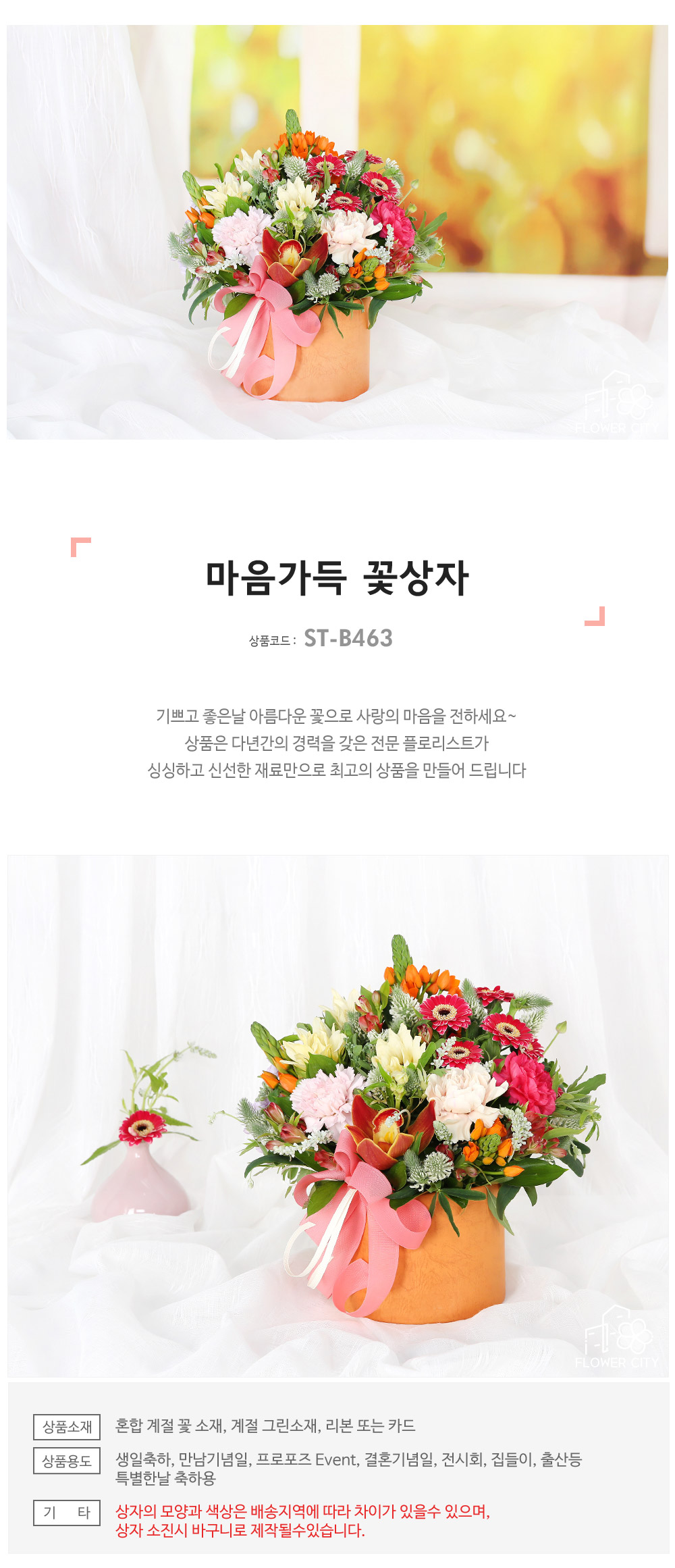 ★ 상자의 모양과 색상은 배송지역에 따라 차이가 있을 수 있으며, 상자 소진 시 바구니로 제작될 수 있습니다.
