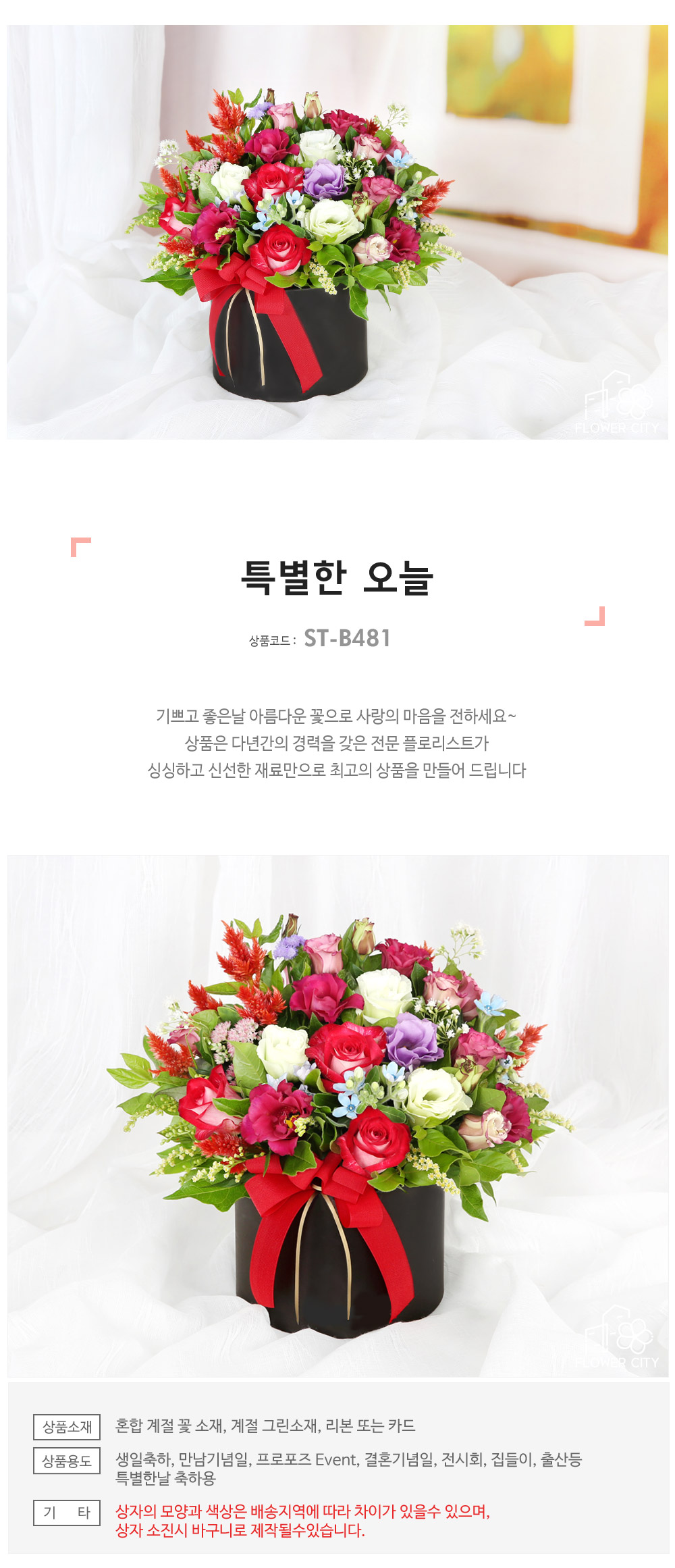 ★ 상자의 모양과 색상은 배송지역에 따라 차이가 있을 수 있으며, 상자 소진 시 바구니로 제작될 수 있습니다.