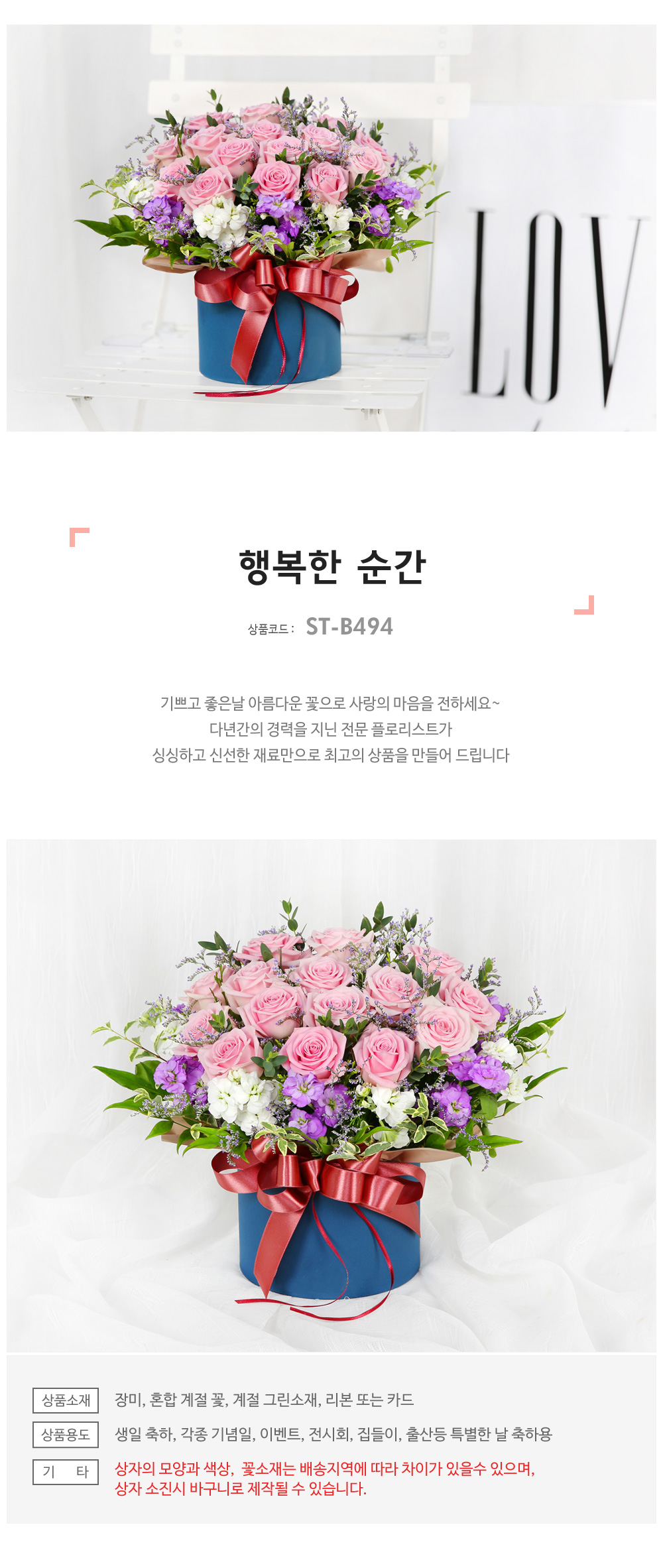 ★ 상자의 모양과 색상은 배송지역에 따라 차이가 있을 수 있으며, 상자 소진 시 바구니로 제작될 수 있습니다.