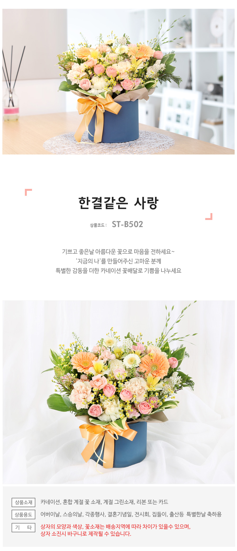 ★ 상자의 모양과 색상은 배송지역에 따라 차이가 있을 수 있으며, 상자 소진 시 바구니로 제작될 수 있습니다.