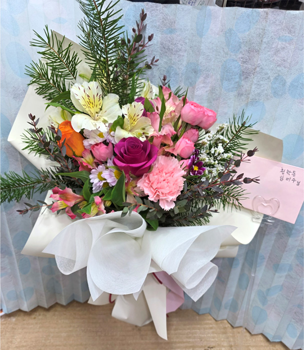 꽃은 시선하게 잘 왔습니다 포장도 예쁘게 잘 되었구요 덕분에 울아들 졸업이 한층 더 빛났습니다
