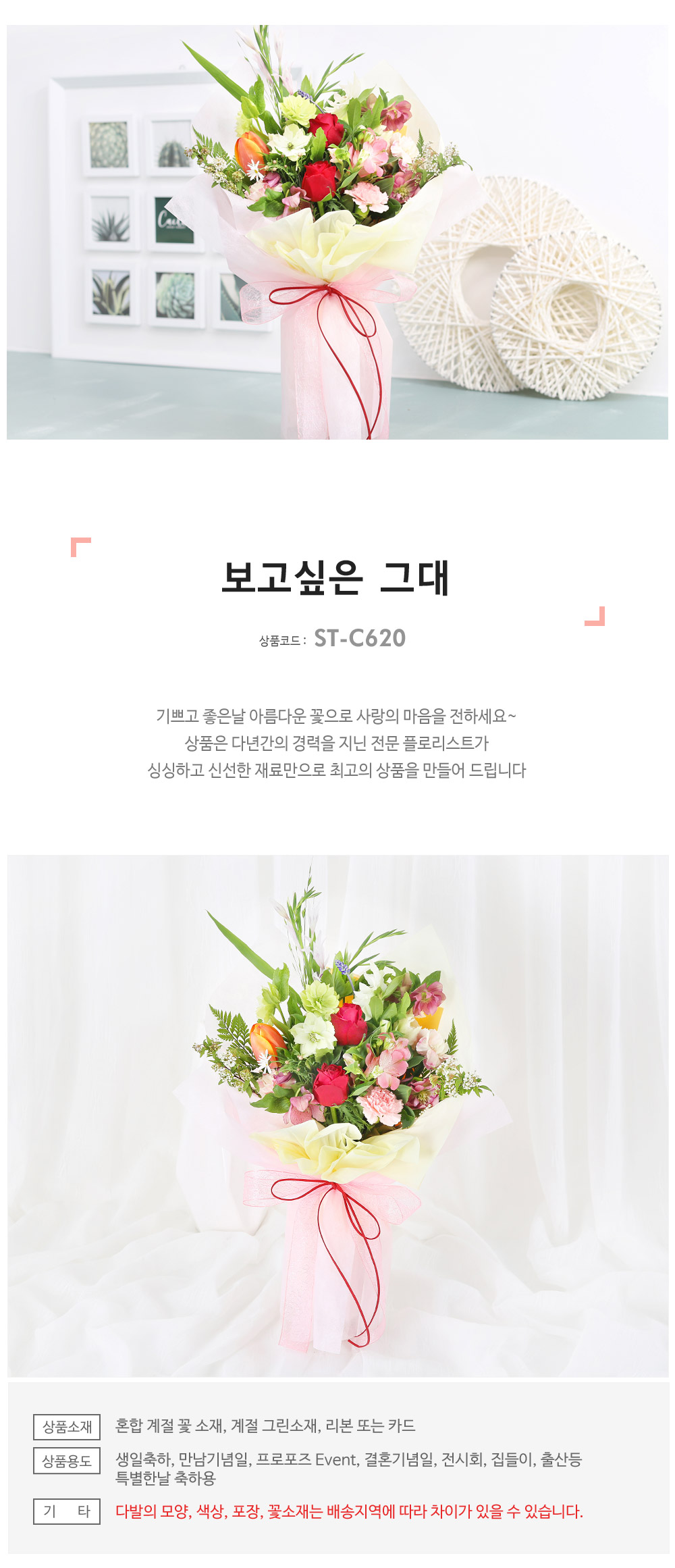 ★ 꽃다발의 모양과 색상, 꽃소재는 배송지역에 따라 차이가 있을 수 있습니다.