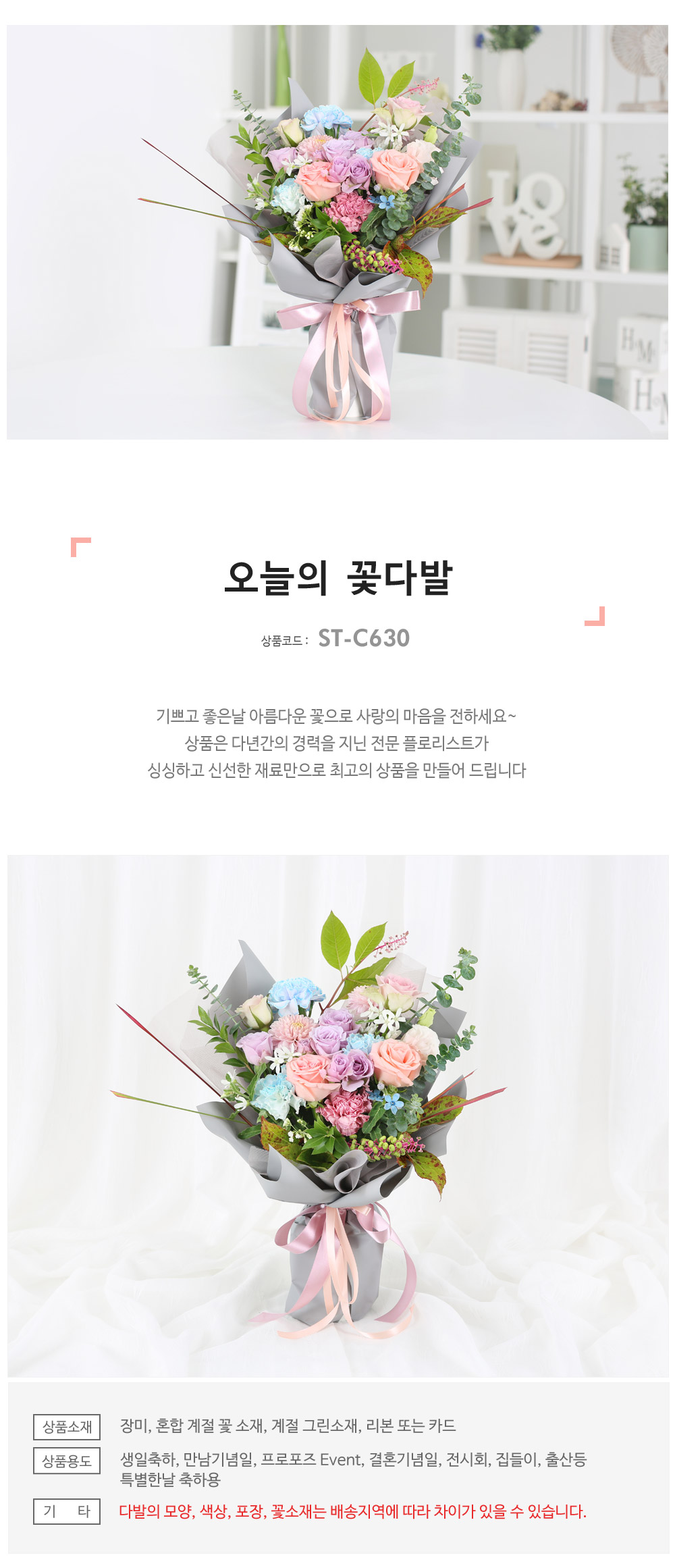 ★ 꽃다발의 모양과 색상, 꽃소재는 배송지역에 따라 차이가 있을 수 있습니다.