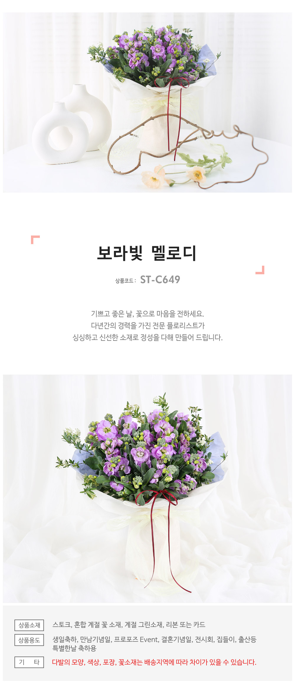 ★ 꽃다발의 모양과 색상, 꽃소재는 배송지역에 따라 차이가 있을 수 있습니다.