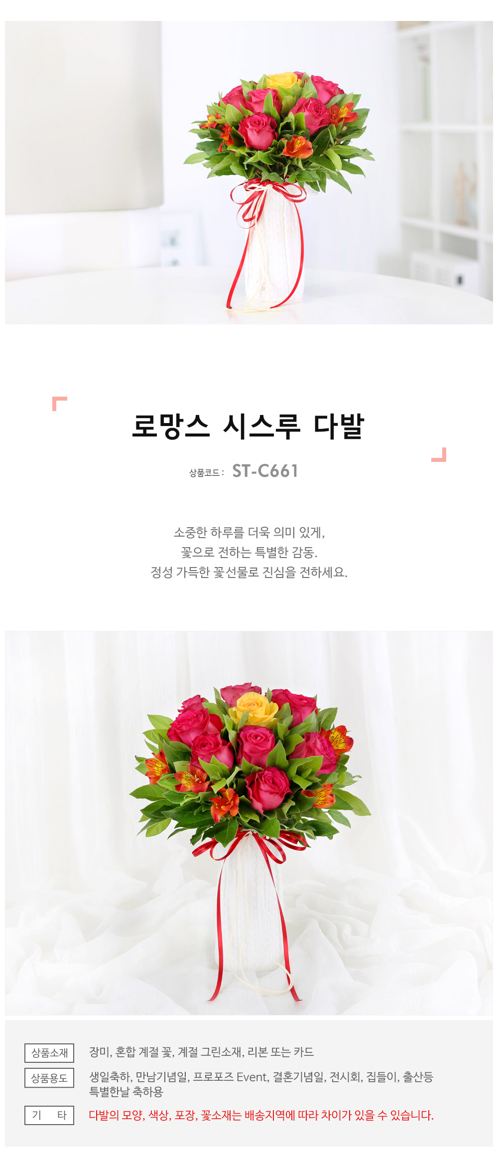 ★ 꽃다발의 모양과 색상, 꽃소재는 배송지역에 따라 차이가 있을 수 있습니다.