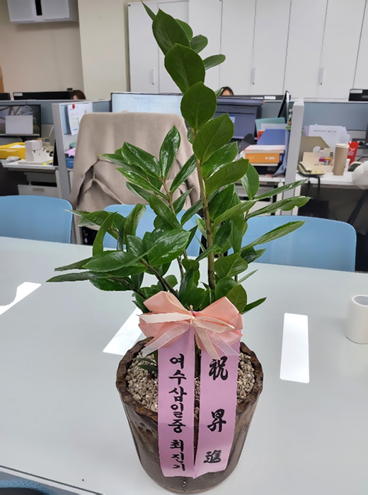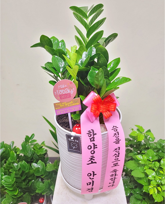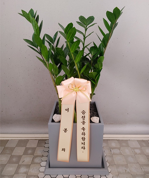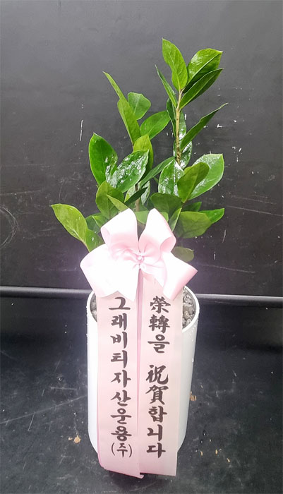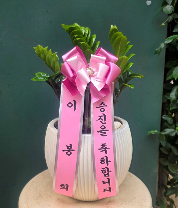 원하는 시간에 빠른 배송 감사합니다. 그리고 배송 진행 과정을 실시간으로 알려주셔서 너무 좋았어요. 화분과 어울리는 리본색도 맘에 듭니다.