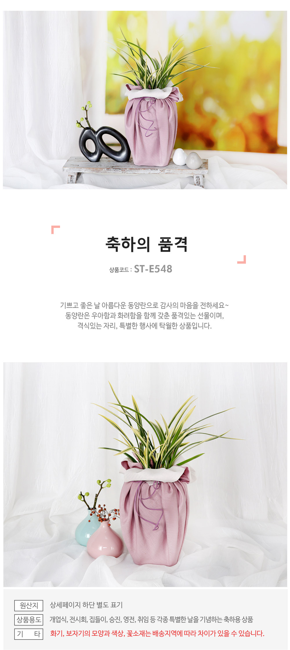 ★ 화기,보자기의 모양과 색상, 꽃소재는 배송지역에 따라 차이가 있을 수 있습니다.