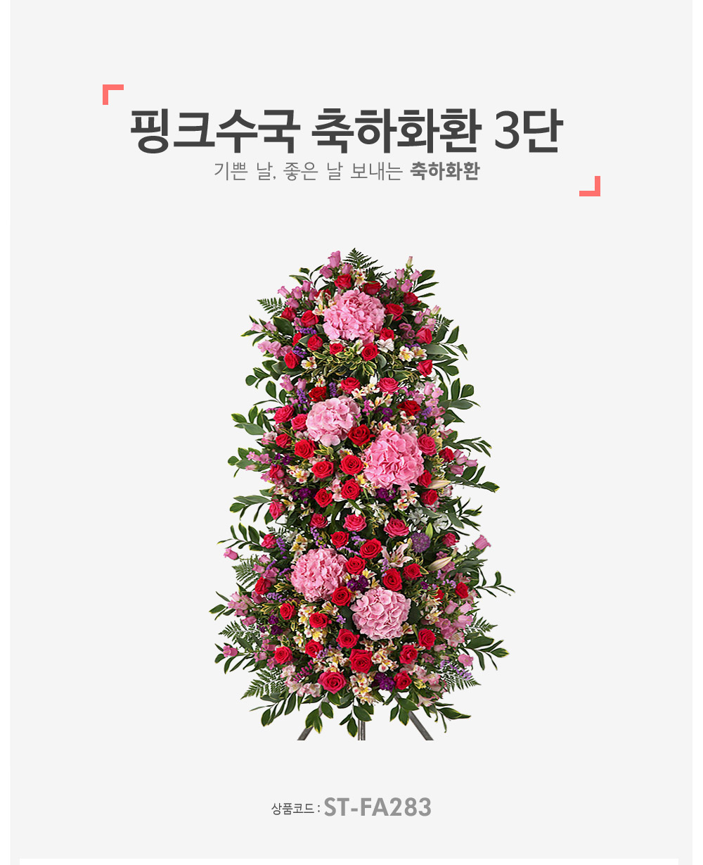 핑크수국 축하화환 3단