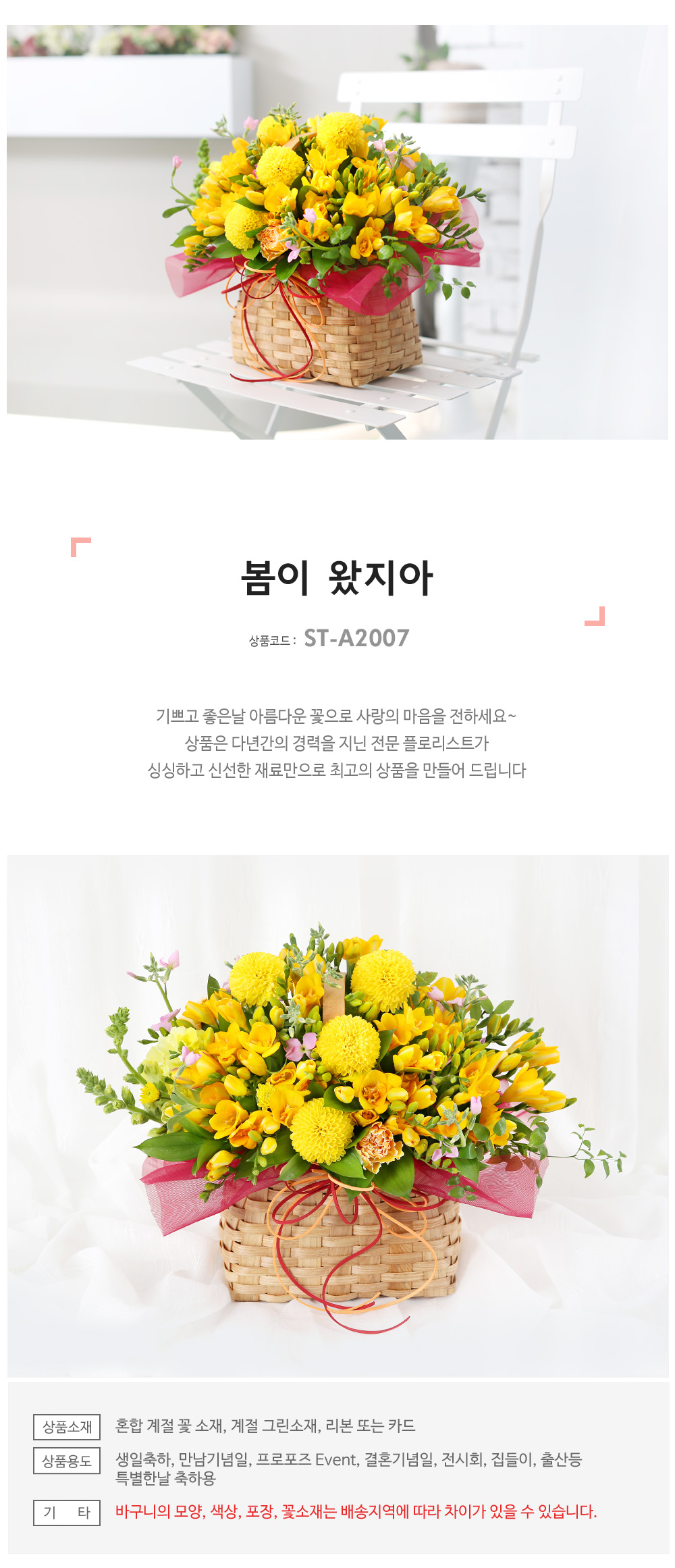 ★ 바구니의 모양과 색상, 꽃소재는 배송지역에 따라 차이가 있을 수 있습니다.
