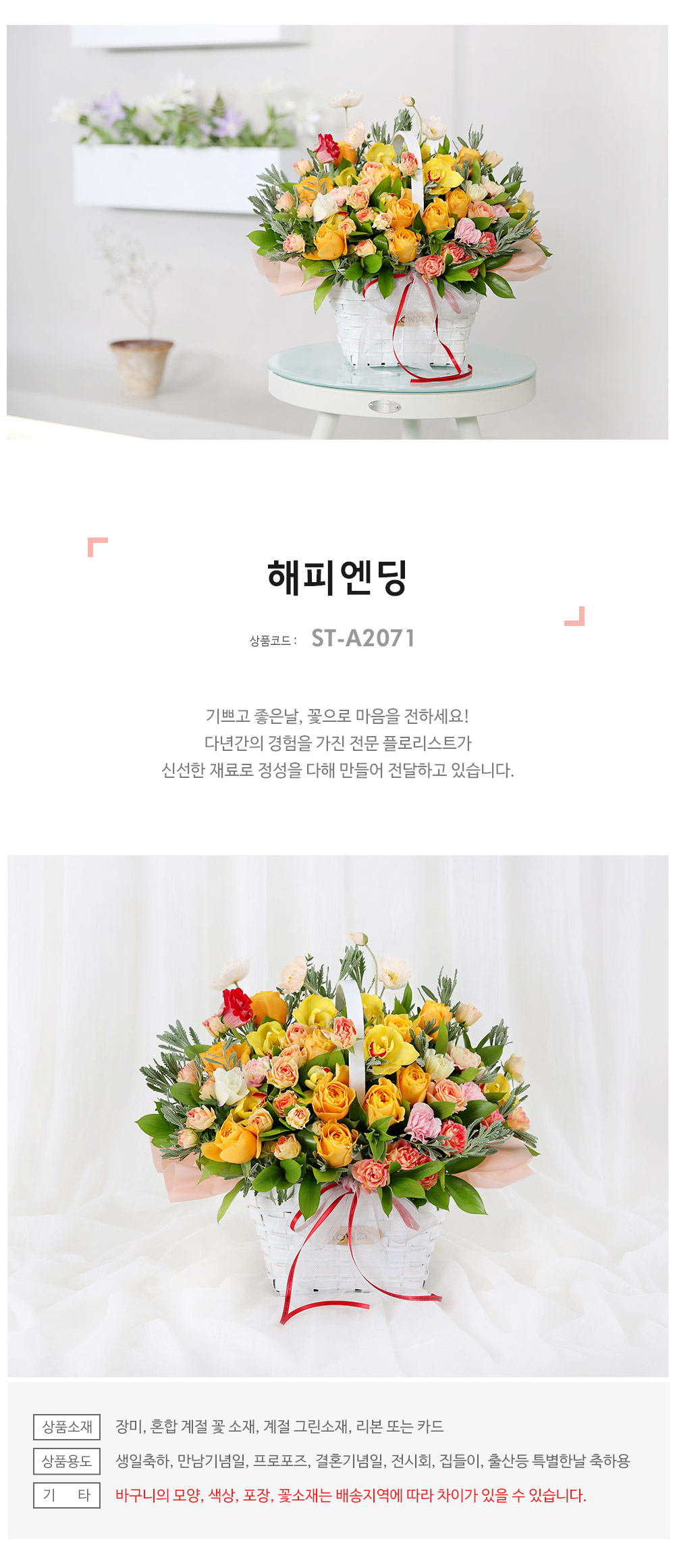 ★ 바구니의 모양과 색상, 꽃소재는 배송지역에 따라 차이가 있을 수 있습니다.