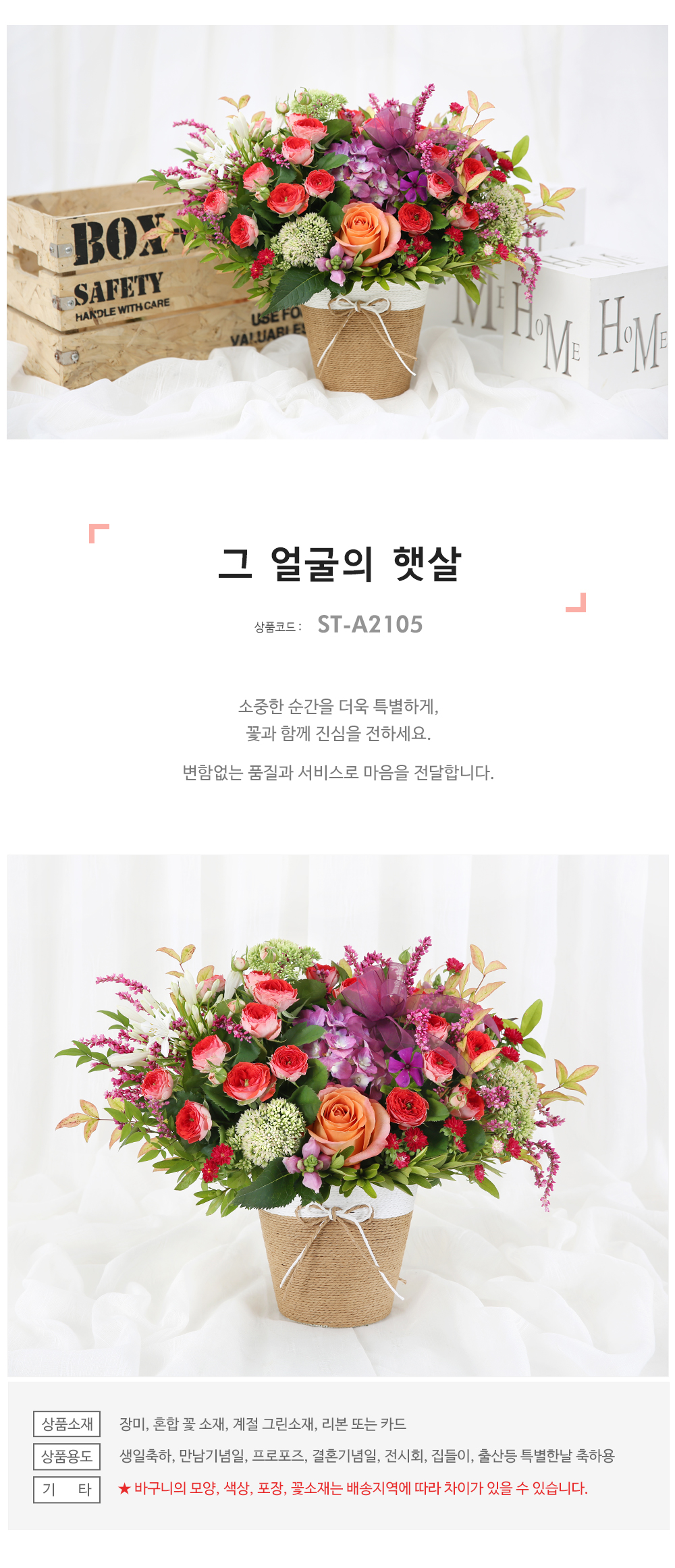 ★바구니의 모양, 색상, 포장, 꽃소재는 배송지역에 따라 차이가 있을 수 있습니다.