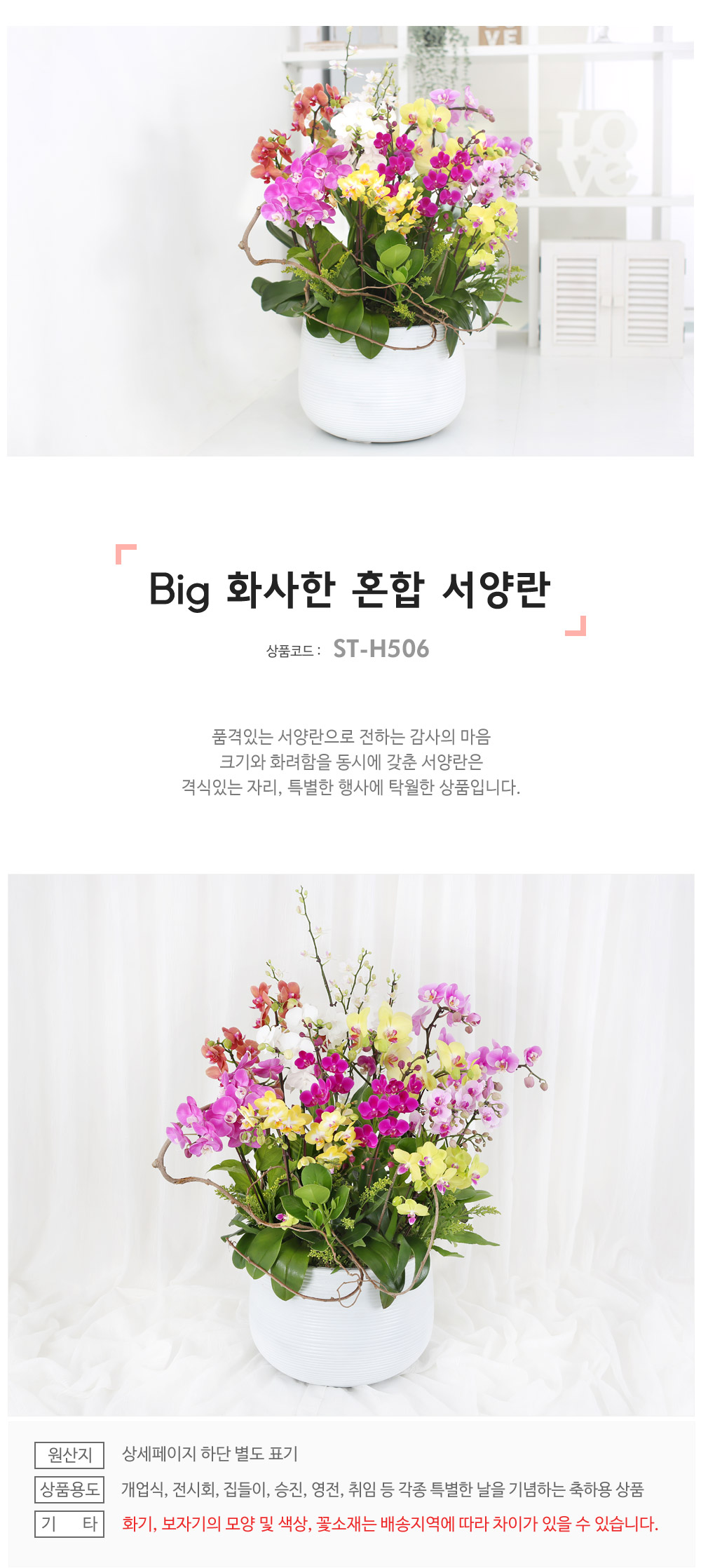 ★ 화기의 모양과 색상, 초화류 등의 부재재는 배송지역에 따라 차이가 있을 수 있습니다.